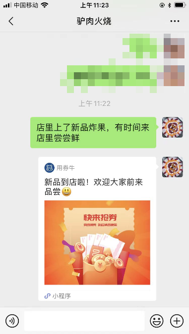 不仅微信群内发,也可单独发给客户优惠券