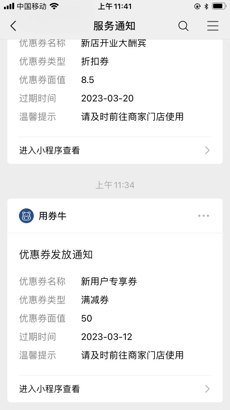 客户微信自动收到发券提醒