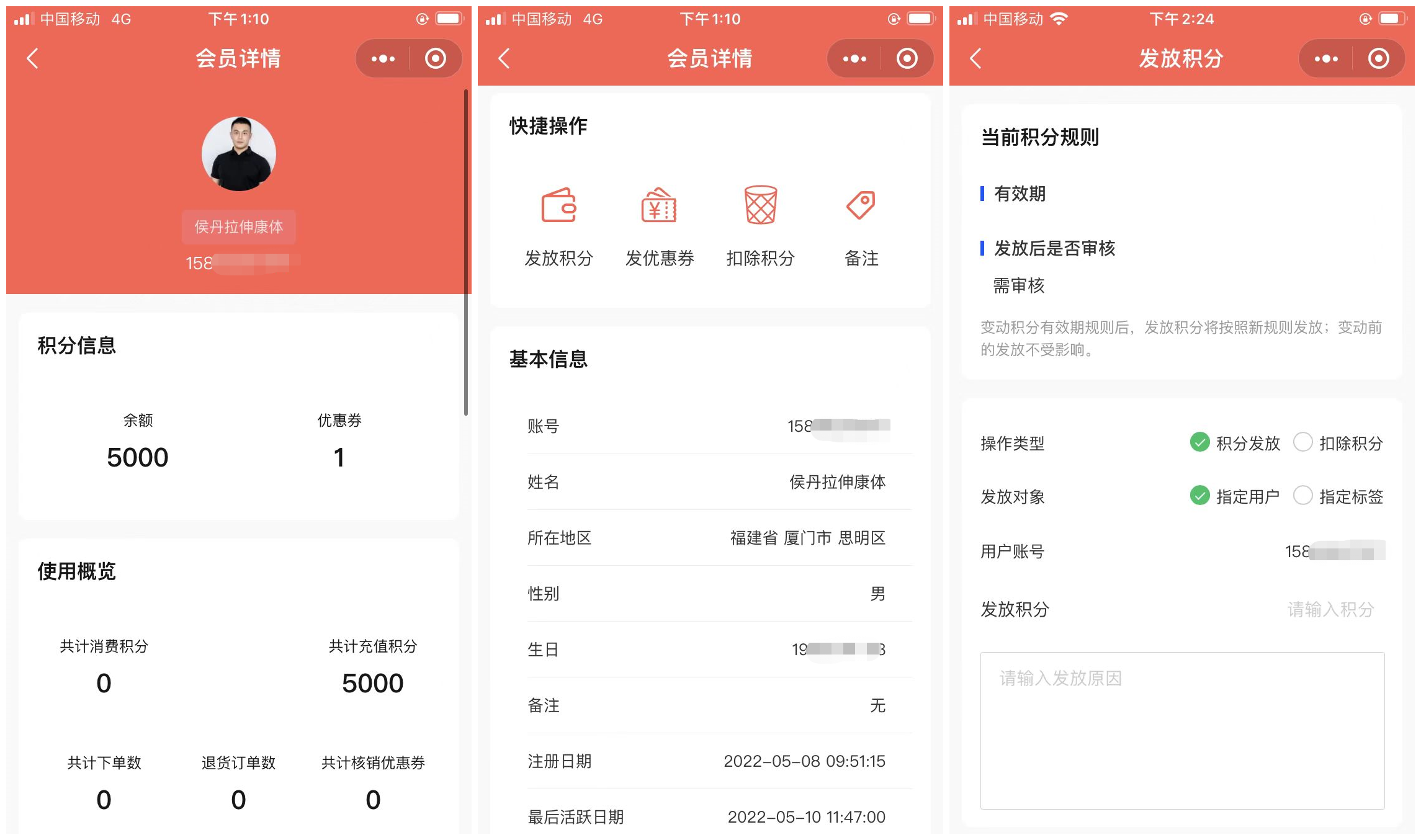 客户的基本信息包括:姓名、性别、生日、手机号、住址,为了后续针对性的运营,也会涉及到积分余额,订单情况、注册时间、最后活跃时间、积分流水等,对培养私域流量也有重要的作用。