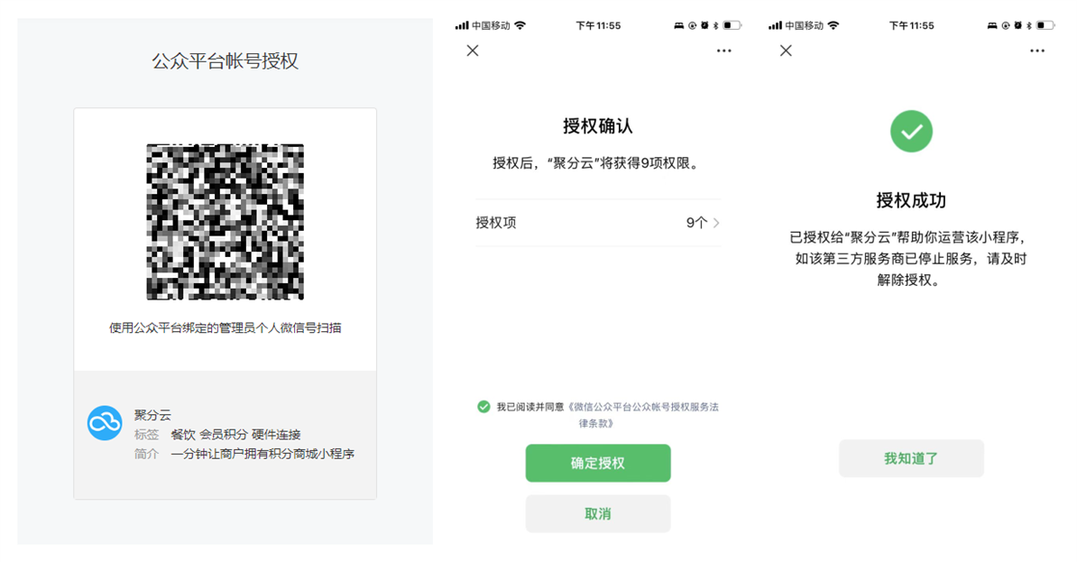 第三步:授权成功后,电脑端页面会自动跳回聚分云,开始处理授权结果: