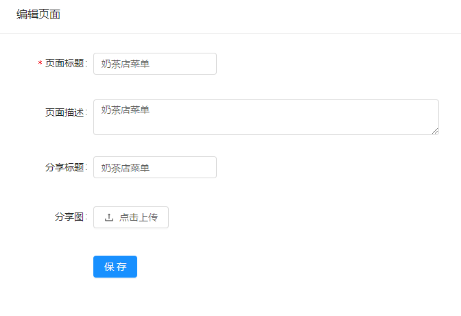 打开链接,此时就会显示刚才创建的自定义页面:奶茶店菜单